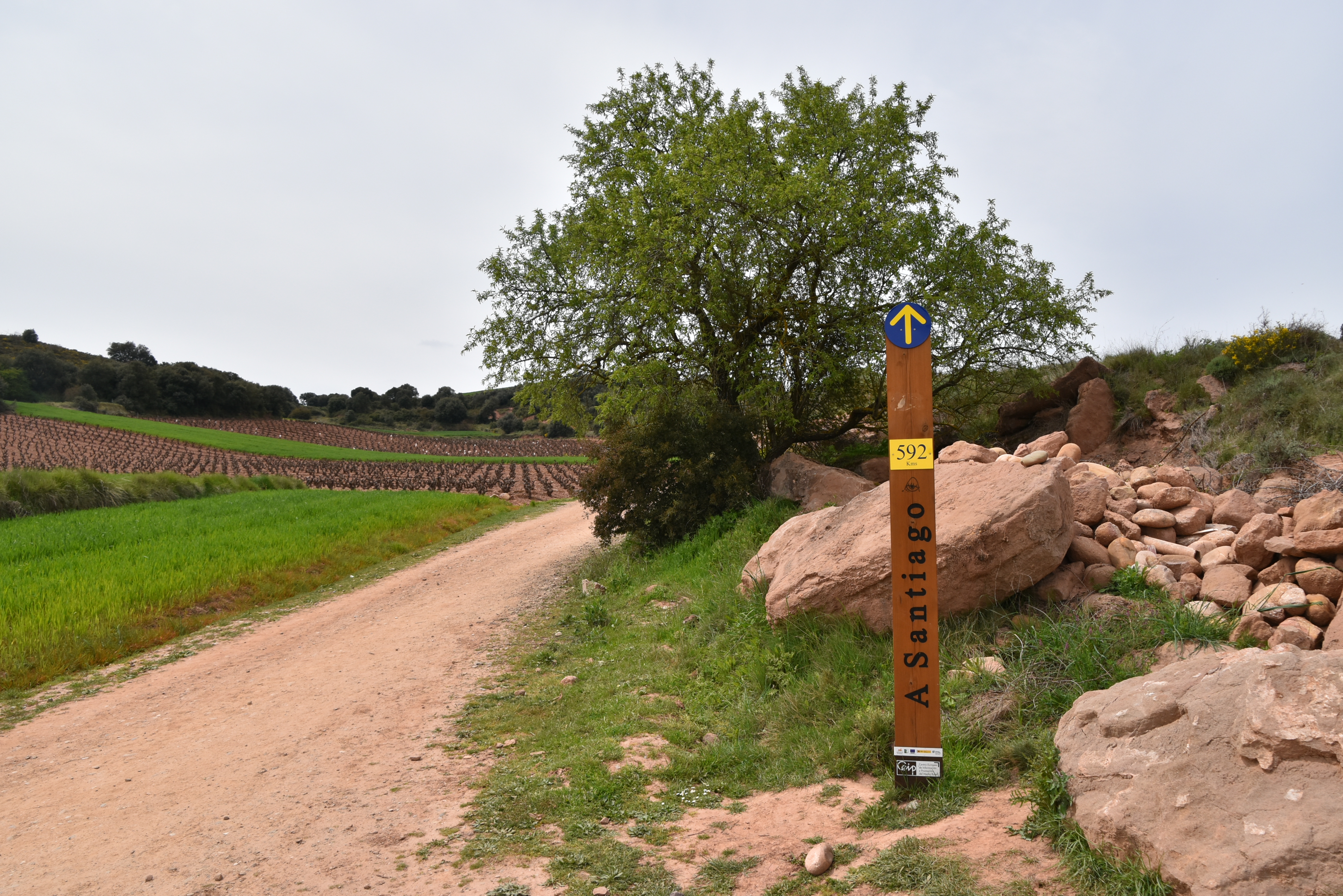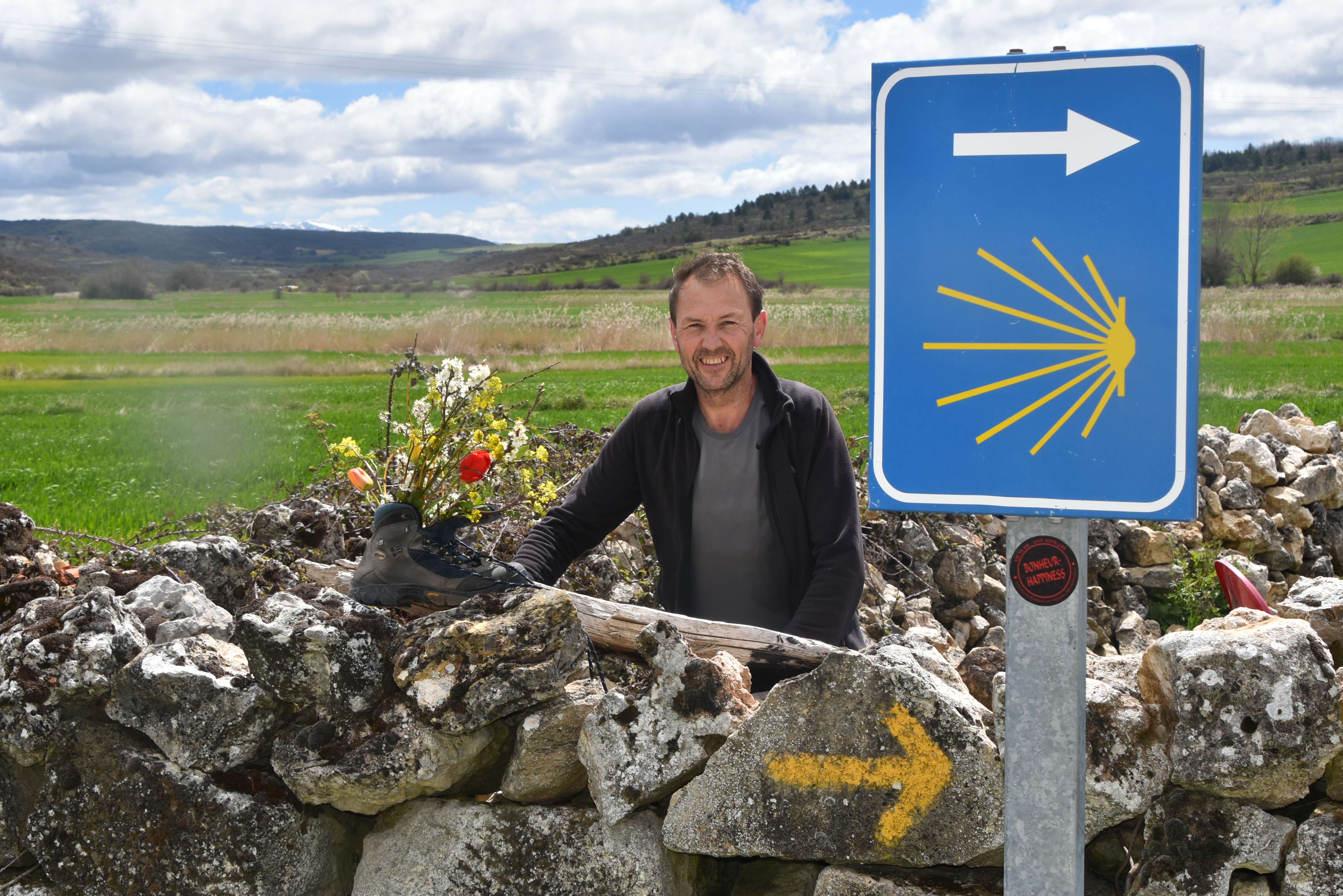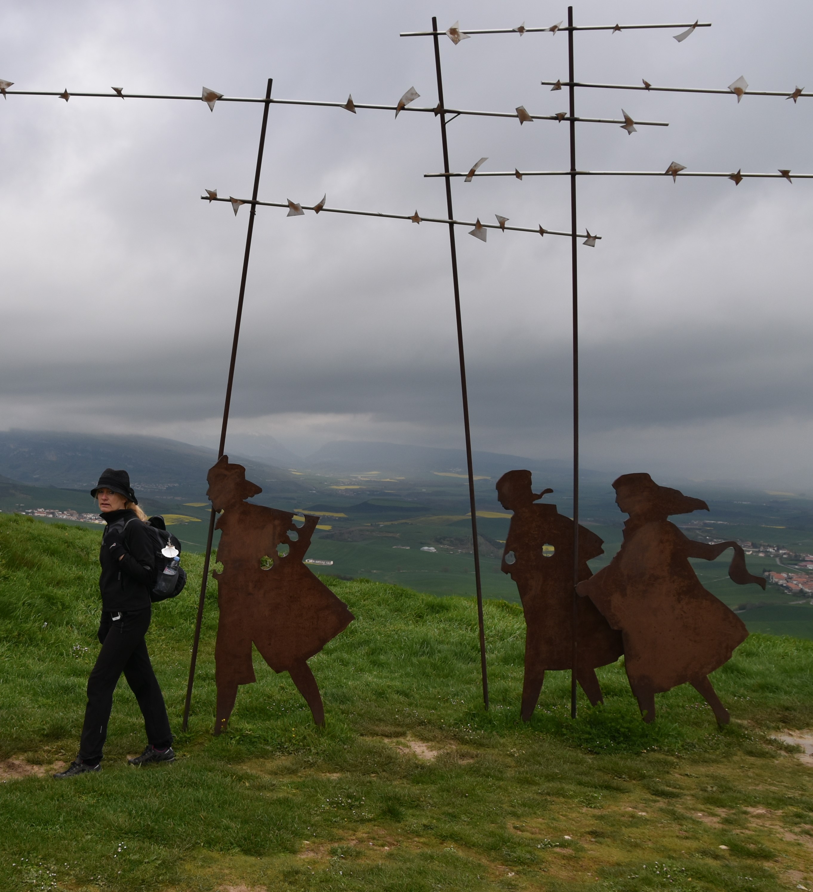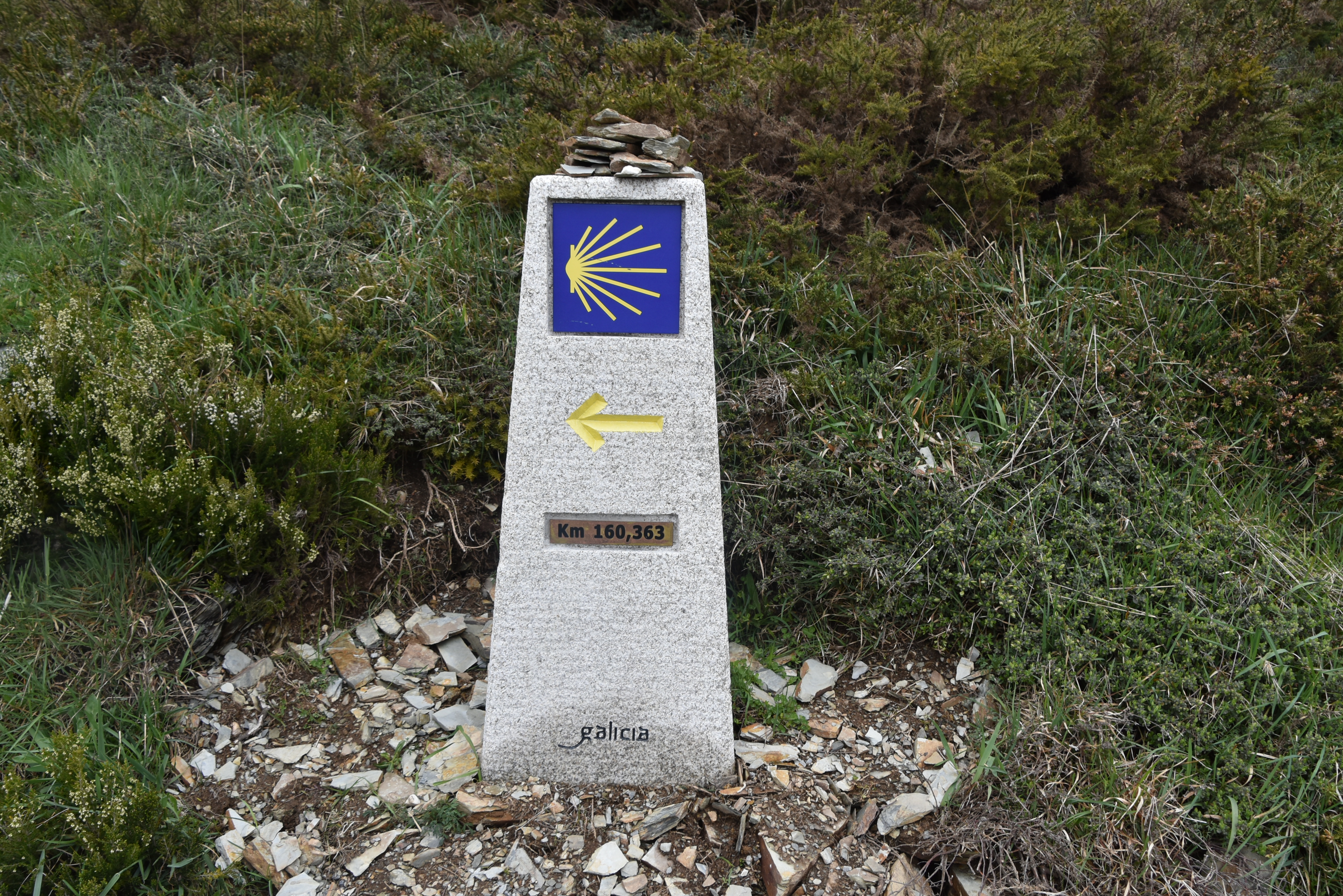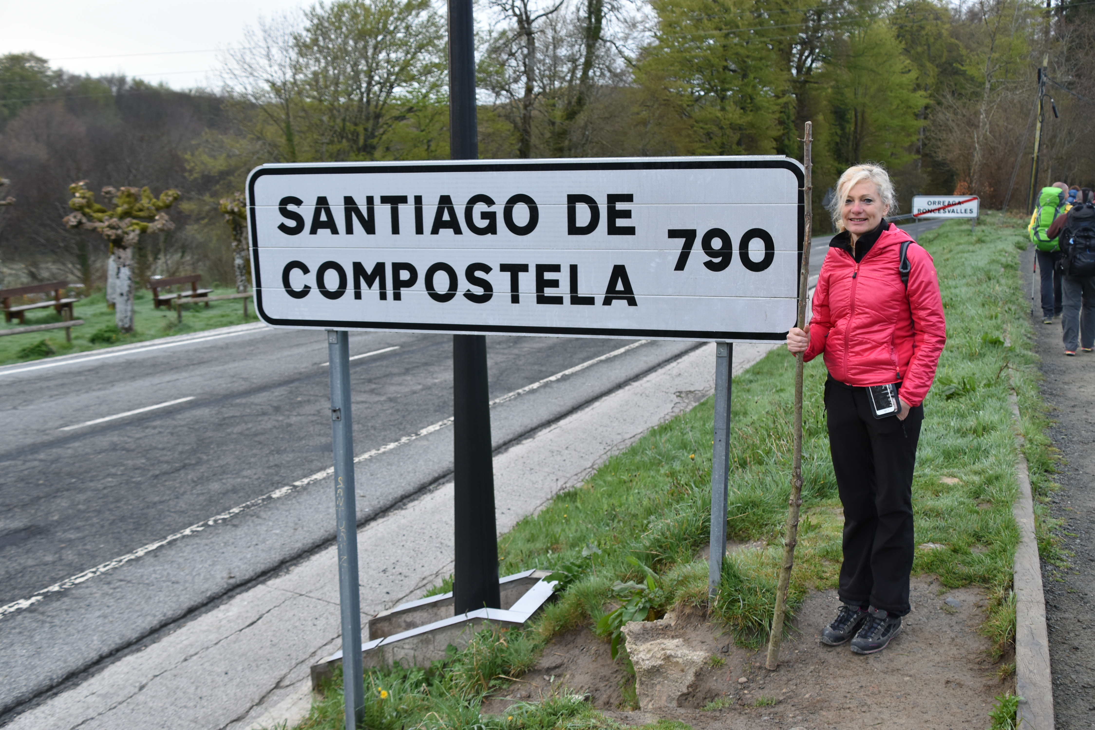 Drugo jutro po štartu, prečkanju Pirenejev in prenočevanju v Roncesvallesu sledi za romarje obvezno slikanje ob tabli za Santiago.