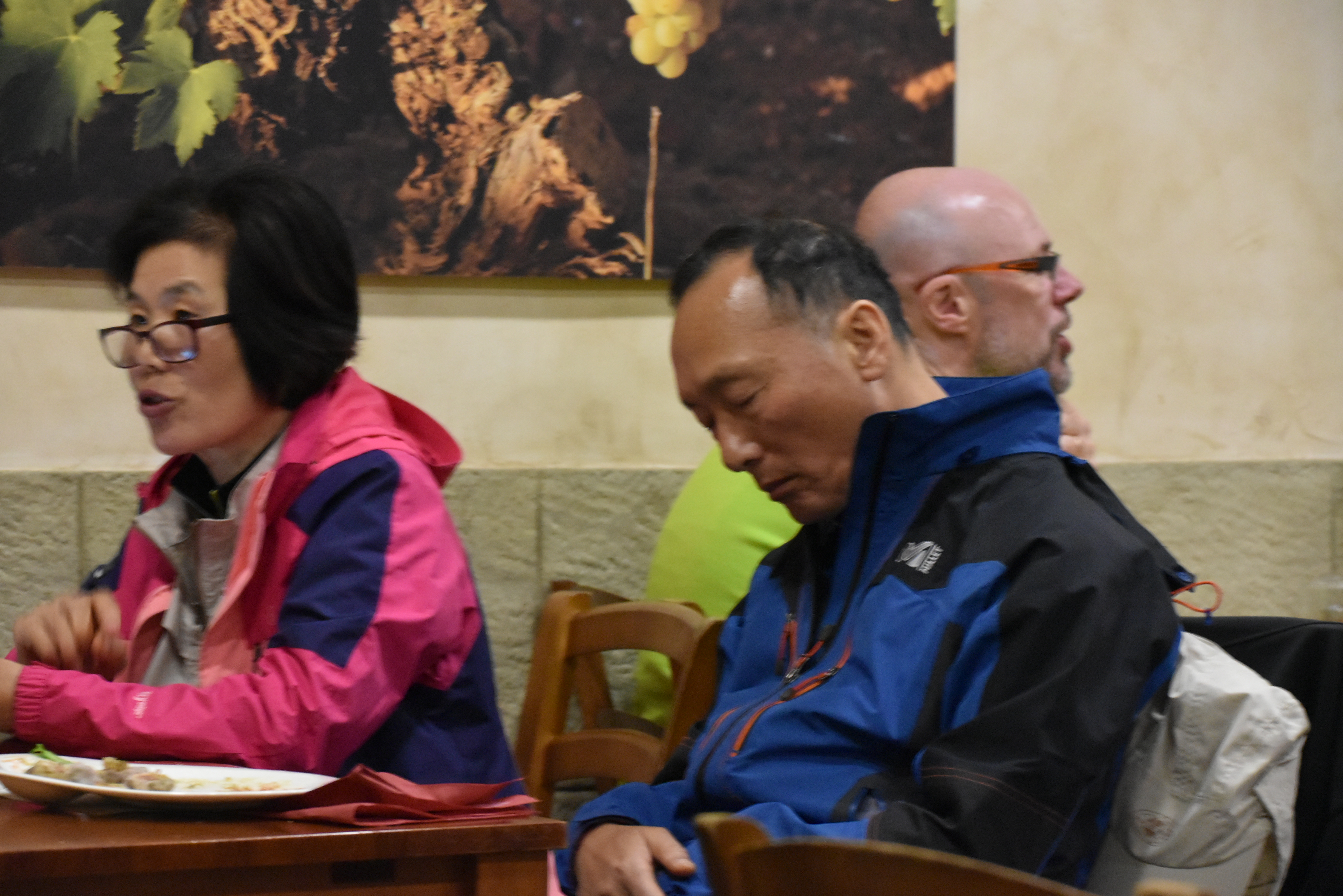 Zelo sočno je opisal naš dan mlad peregrin, ko smo neko popoldne po tuširanju, pred albergom čakali na večerjo. Bose noge smo položili na travo in pri tem vzdihovali od zadovoljstva. In takrat se je oglasil Belgijec Thomas, ki dela v Bruslju v zavetišču za begunce. Nejeverno, zmigajoč s svojimi dolgimi dreadlocksi je rekel: ” We walk, walk, walk and drink and walk, walk and eat and walk,walk and sleep and walk, and all the time we are extremely happy. We all must be fucking idiots,” in se je nasmejal na vsa usta, za njim pa tudi mi vsi, ko je starejši Korejec, katerega imena si nikakor nisem mogla zapomniti, zaključil :” That is fucking true.”