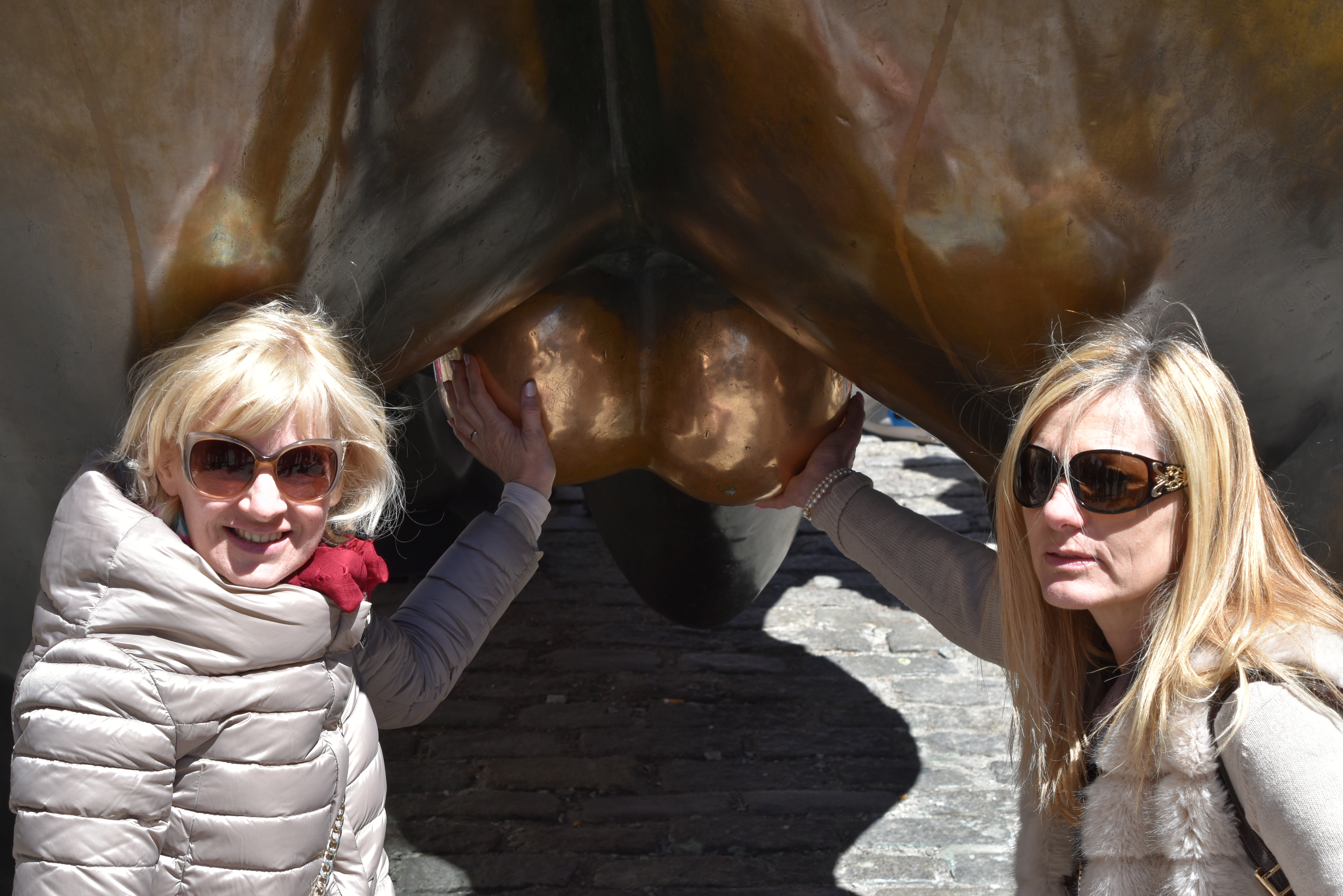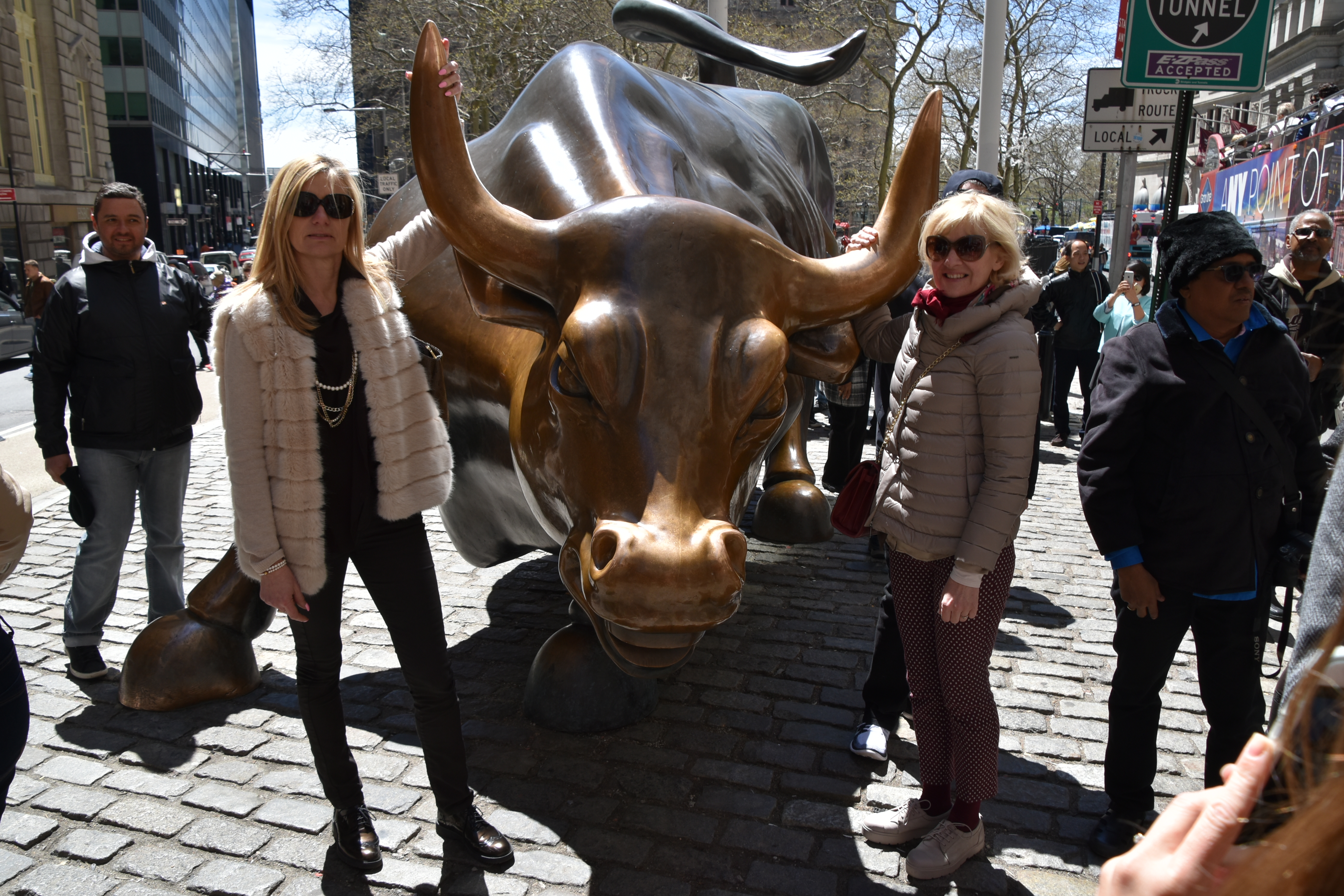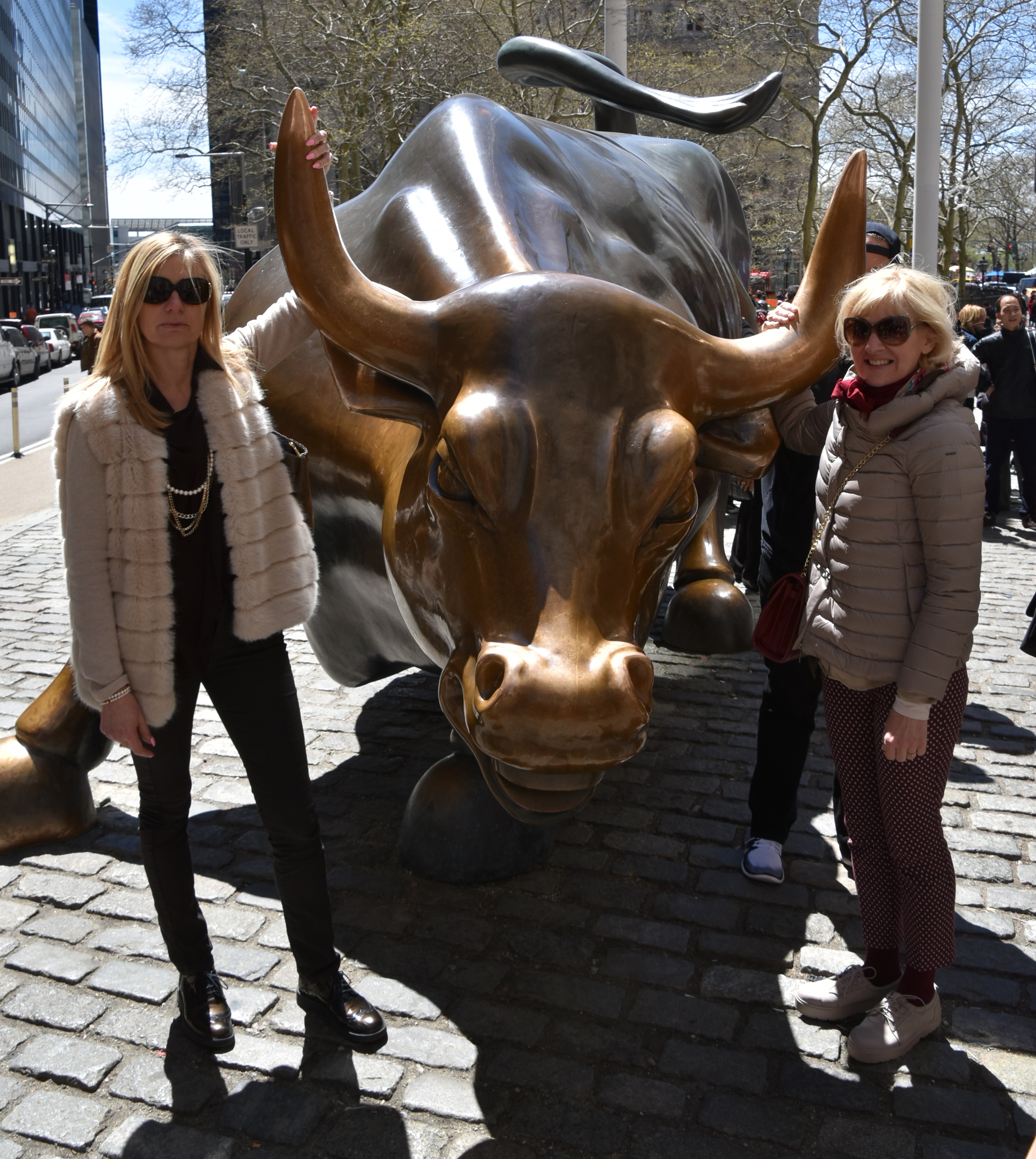 V šestih dneh je dobil bronasti bik nov življenjski prostor na Lower Manhattnu, na mestu neverjetne kupčije, kjer je Minuit od Indijancev kupil celoten Manhatten za 24 dolarjev, v Bowling Greenu. Bik z razkoračenimi nogami, k tlem prihuljeno glavo in privzdignjenim repom napada v smeri Broadwaya. Izpostavljen je množicam, ki ga dnevno grabijo za roge in jajca, gladijo po glavi in vratu, da s svojimi dotiki že načeli njegovo maso. Na najbolj priljubljenih mestih dotika je že spremenil barvo, postal je še bolj svetleč in bleščeč.