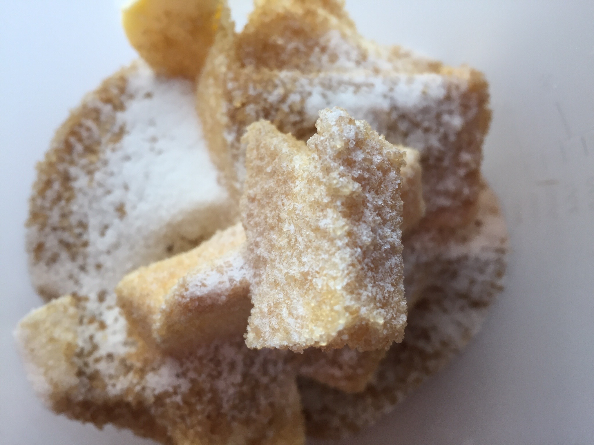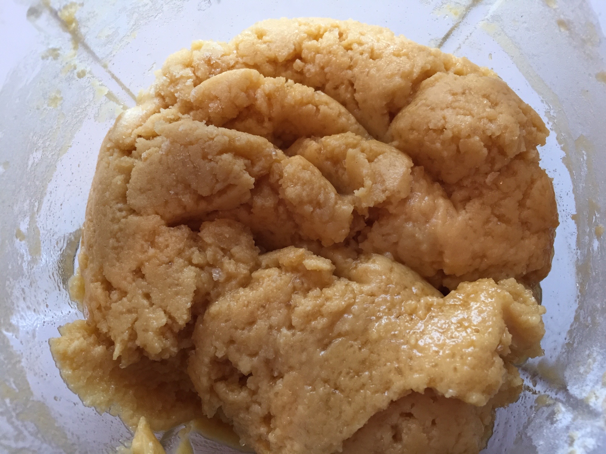 Sladkor, limonin sok, maslo, narezano na rezine, jajčni rumenjak, vodo in vanilijev ekstrakt dajte v posodo in z mešalnikom mešajte dokler ne dobite rahlo, zračno zmes. Dodajte moko in zmešajte v testo. Testo zavijte v plastično folijo za živila in ga za eno uro postavite v hladilnik.