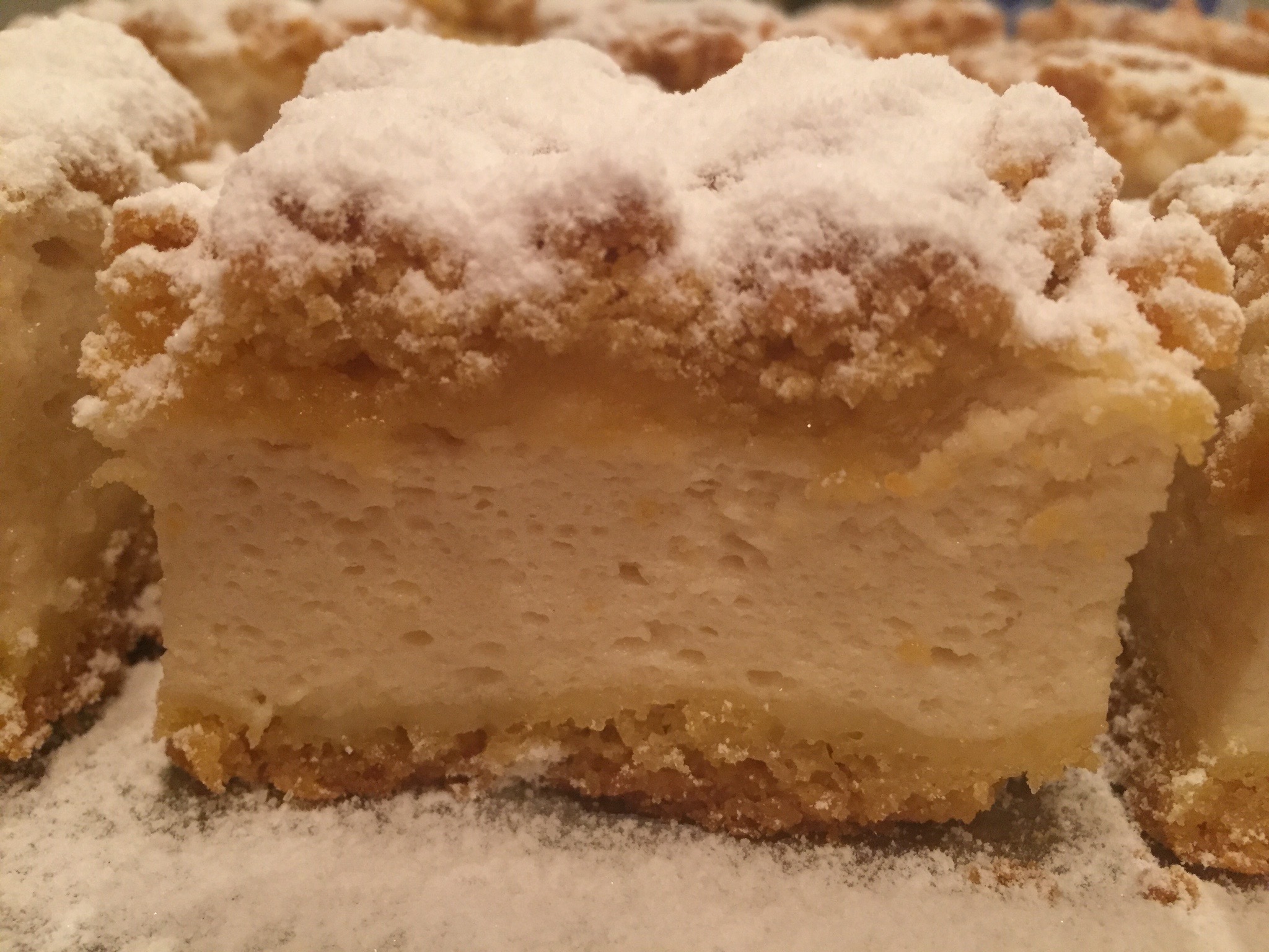 V drugo posodo damo beljake in sladkor. Z ročnim mešalnikom stepemo sneg. Dodamo moko, jogurte, kislo smetano in vaniljev sladkor. Zmešamo s kuhalnico in maso vlijemo na pripravljeno podlago.
