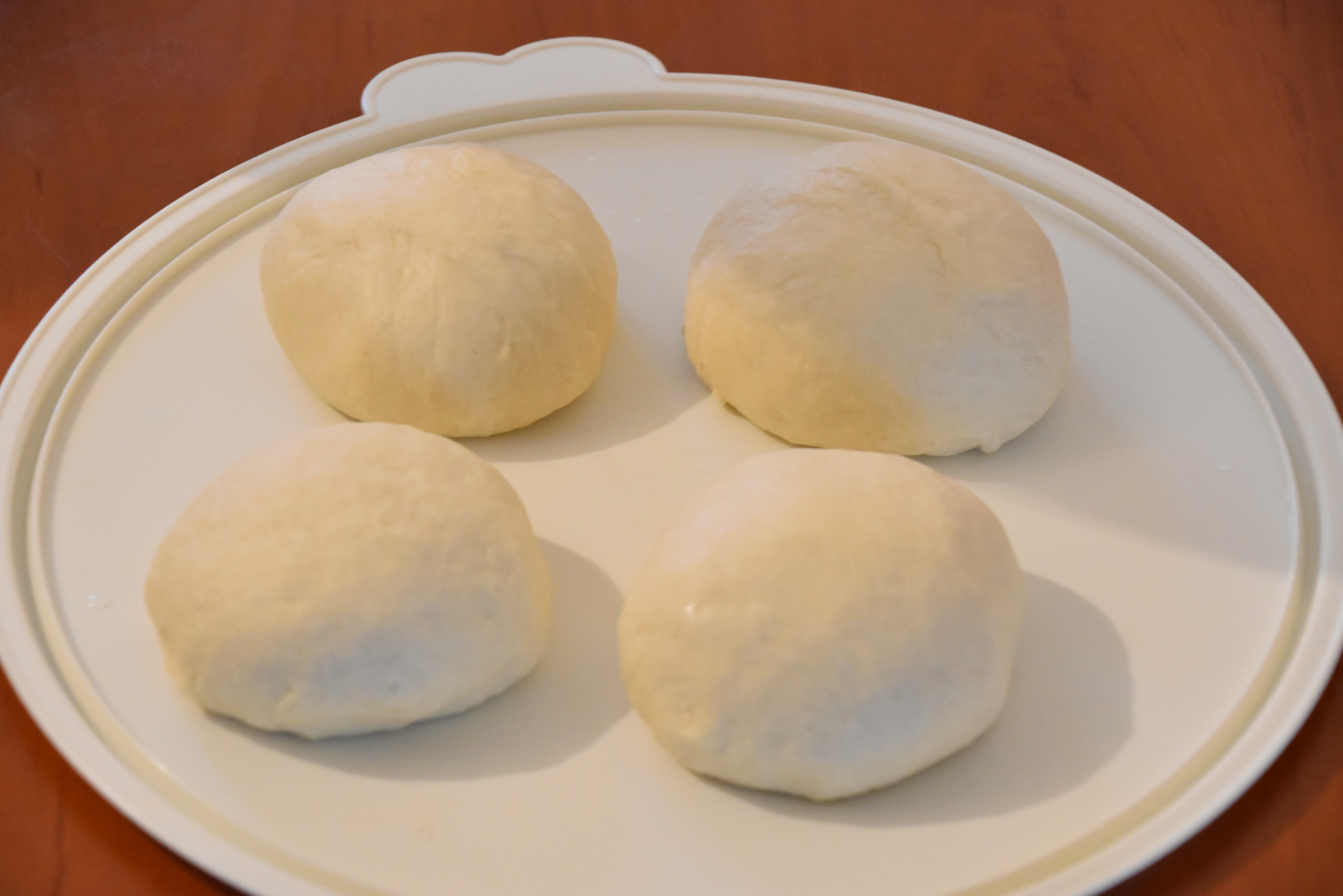 4. Testo naj dva krat vzhaja. Prvič ga pustite vzhajati 40 do 50 minut. Testo še enkrat pregnetite in oblikujte kroglice s približno 200 g testa.