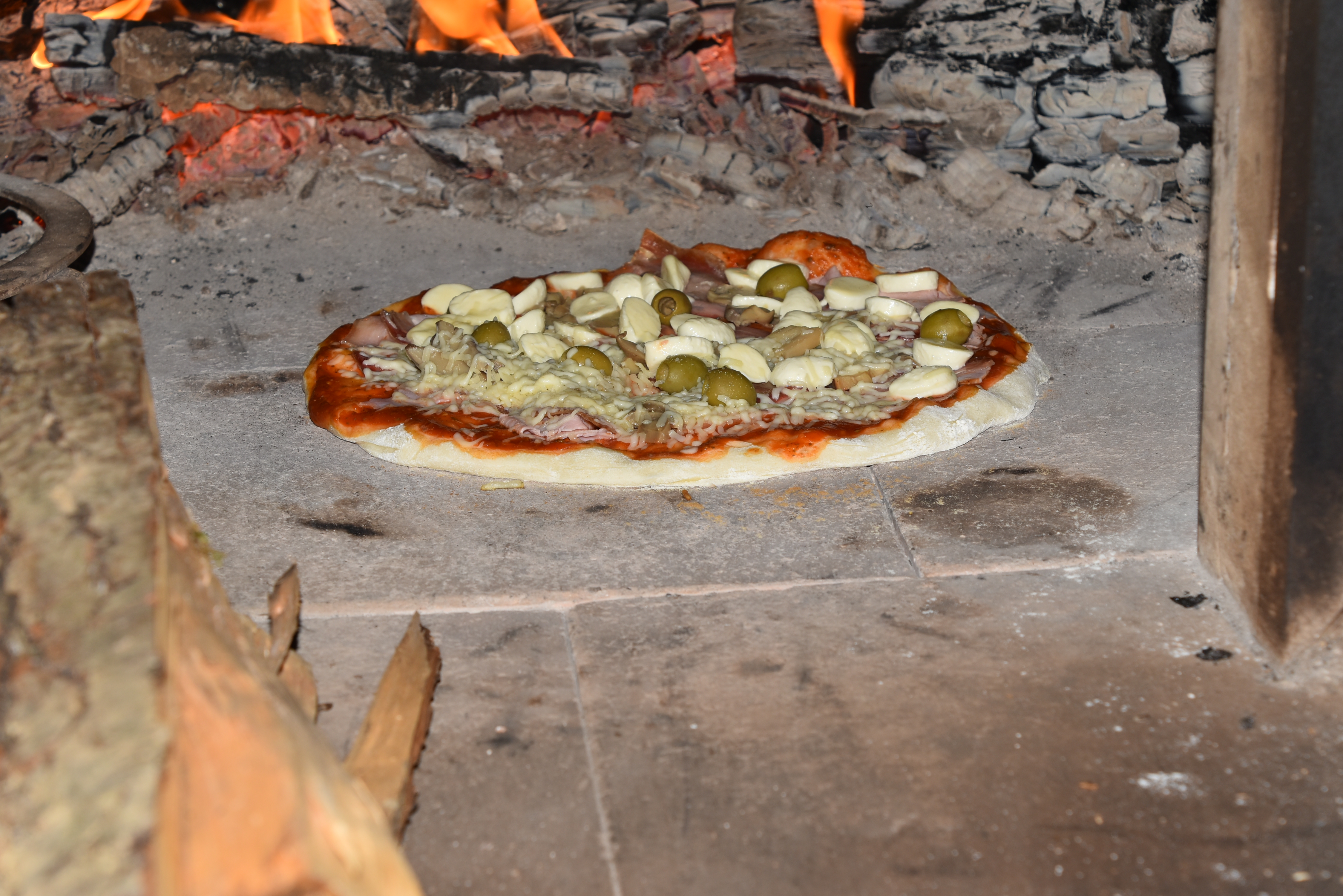 8. Pecite na najvišji temperaturi. Pečico razgrejte na najvišjo možno temperaturo ( pri moji je to 280 stopinj ) in jo pecite dokler ne začne skorja rjaveti, kar se bo zgodilo najkasneje v desetih minutah. Zaradi visoke temperature se pica ne bo izsušila. Moj brat pa je pri pripravi pice velik zagovornik svinjske masti. Pravi, da je testo najboljše zapečeno in nič izsušeno, če olje nadomesti s svinjsko mastjo. Če imate krušno peč, za peko zadostuje 2 do 3 minute. Pico pecite direktno na tleh peči, na mestu, kjer ste pred tem imeli žerjavico. Tako zagotovite, da je podlaga dovolj vroča in se testo tudi spodaj dovolj zapeče.