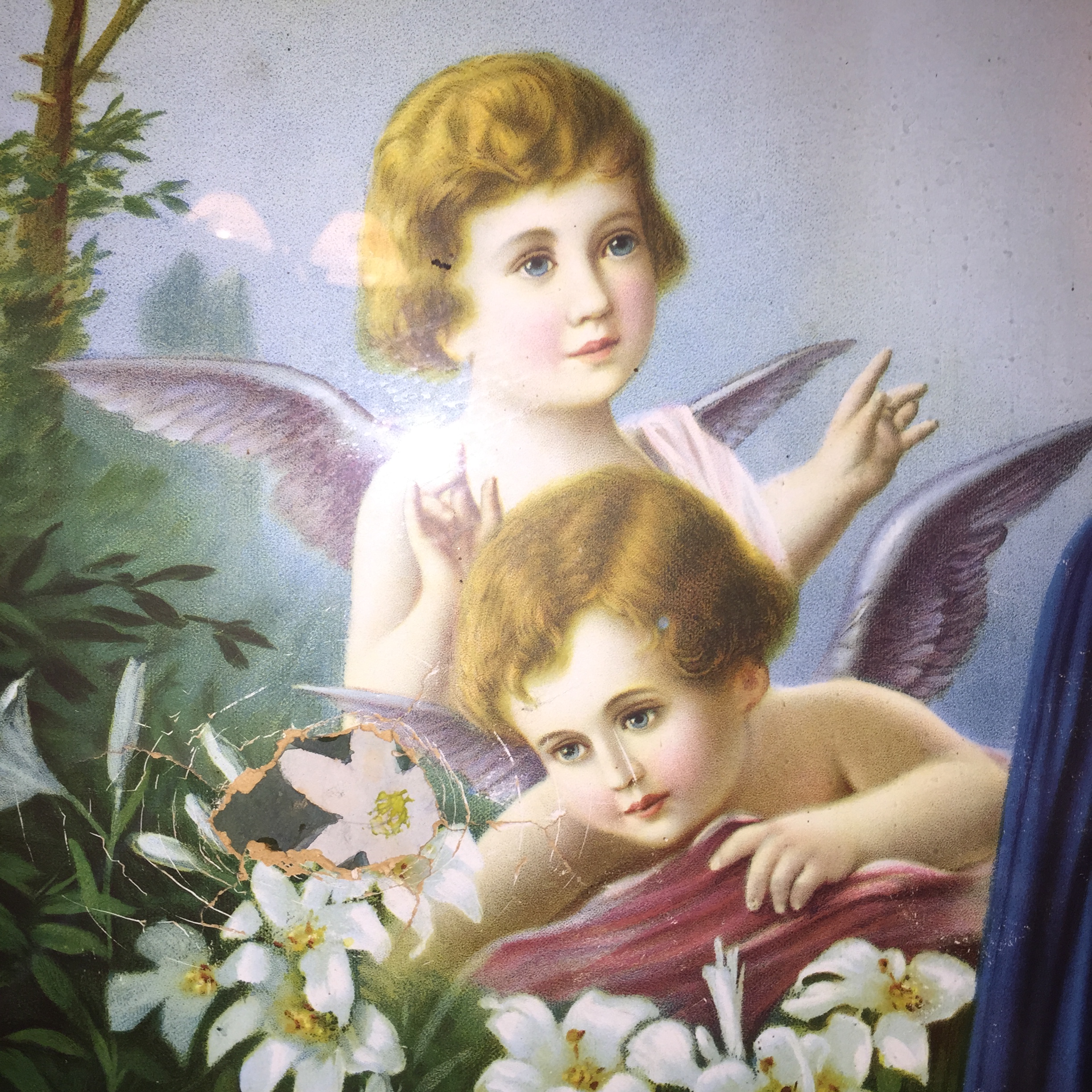 Še ne enoleten je svoji mami rešil življenje. Rodil se je namreč 1942-tega leta, med vojno. In nekega dne je ležal na postelji v spalnici, njegova mama pa je stala ob postelji. Zajokal je, zato se je mama sklonila nadenj in tisti trenutek je skozi okensko šipo priletel zablodel metek in se zaril v sliko nad posteljo, na mesto kjer je še trenutek pred tem imela mama glavo. Na sliki je bila Marija med angeli in lilijami. Metek je naredil luknjo v sliko in izbrisal lilijin cvet. Ko je oče postal fant je krasno risal in sliko je popravil tako, da je luknjo zadelal z na novo narisanim cvetom. Sliko z vstavljeno lilijo imam še zdaj nad posteljo.